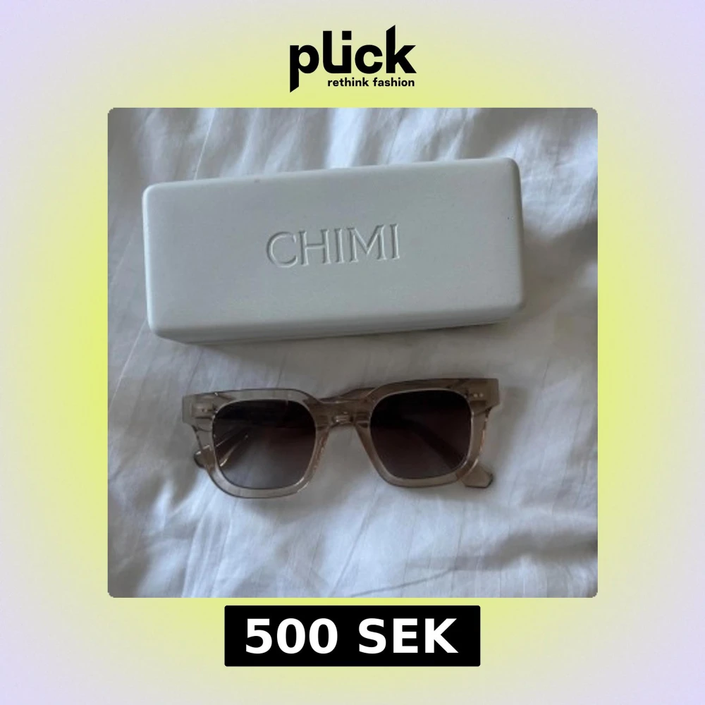 Snygga solglasögon från CHIMI i modellen 04 Ecru. Rektangulär form som ger en cool vibe. Kommer med originalfodral, tygpåse och putsduk med CHIMI-logga. Perfekt accessoar för soliga dagar. Använd bara några få gånger och har inga skador. Om en närmare titt på till exempel glaset så skriv till mig så löser jag det:)