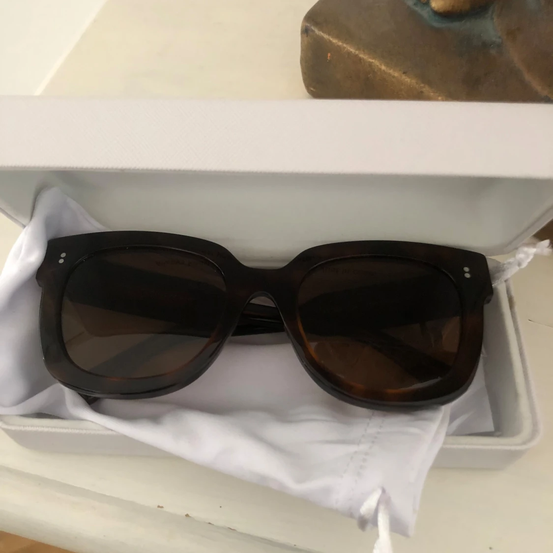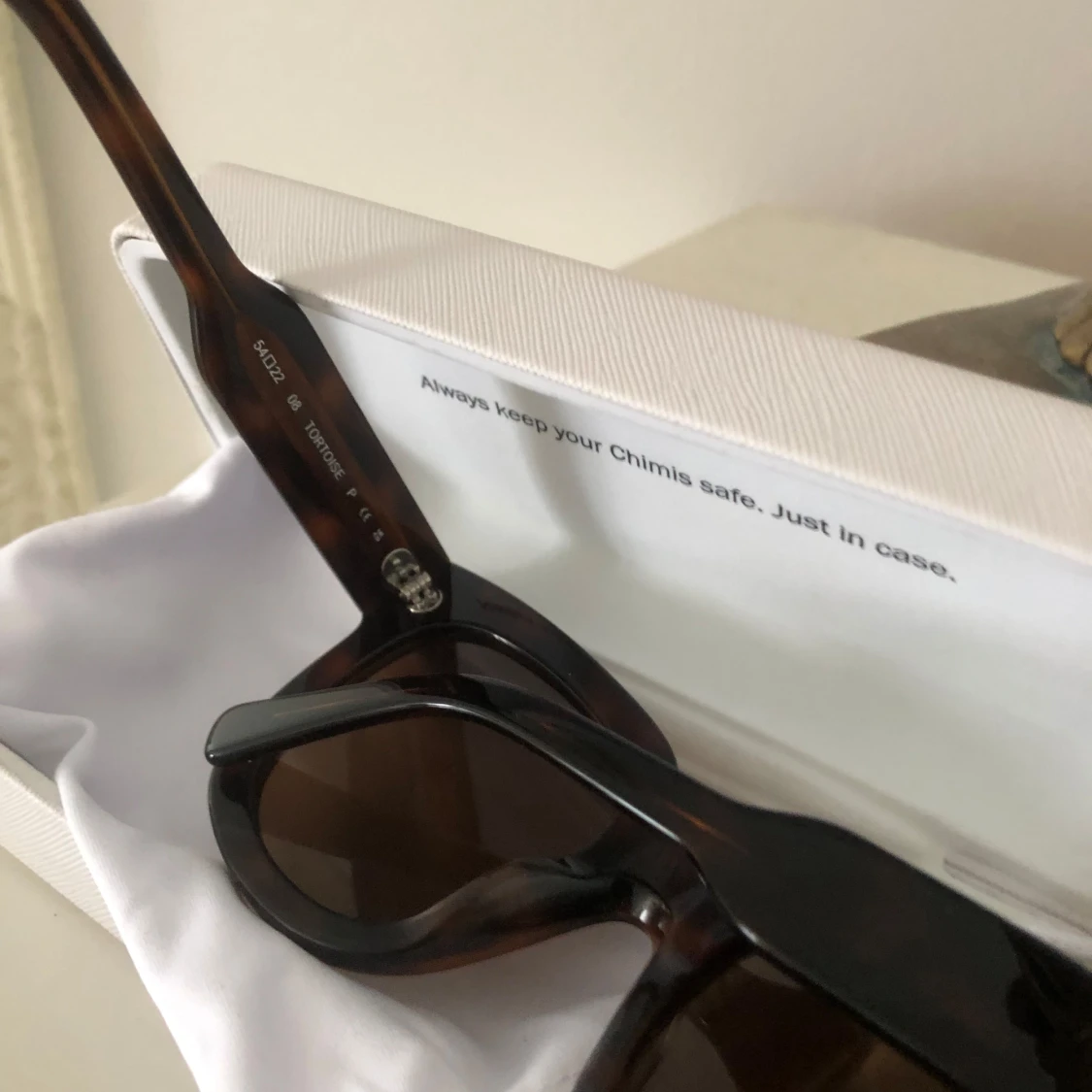 Snygga solglasögon från CHIMI i klassisk fyrkantig modell. Färgen är brun tortoise med mörka linser och bågar i acetat. Kommer med originalvitt fodral och putsduk. Perfekta för att lyfta din stil till nästa nivå. I ny skick, använda Max 2 ggr.