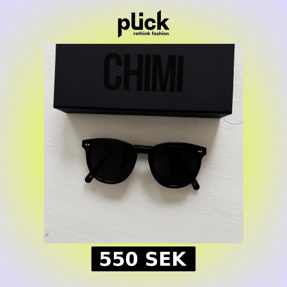 Snygga svarta solglasögon från CHIMI, modell 001 Berry. Runda linser och klassisk design med två silverprickar på bågen. Inte i toppskick men går fortfarande att använda 😊 vet inte om denna modellen finns att köpa på nätet fortfarande eller om dom uppdaterat just denna modellen men säljer en liknande. Annars stilrena och passar både till kille och tjej, original låda medföljer ej. Nypris: 1400kr