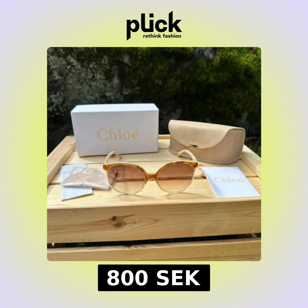 Snygga oanvända solglasögon från Chloé med rundad form och transparent beige båge i marmorerad look. Glasen är ljusbruna och bågarna har diskret Chloé-logga på sidan. Kommer med originalfodral och putsduk. Köpta 2019 och kvitto finns om så önskas.