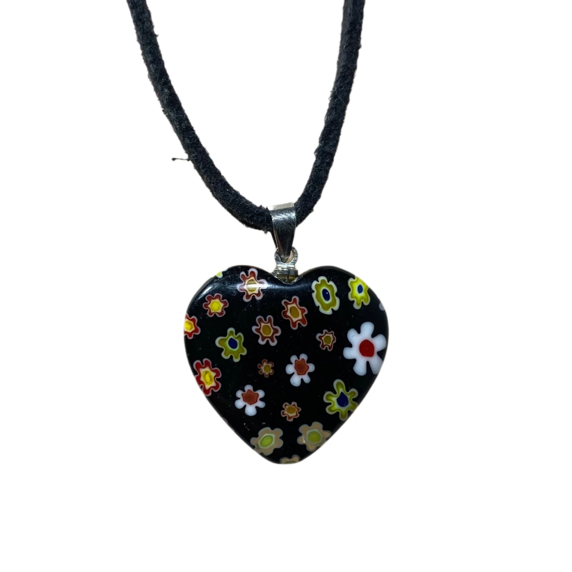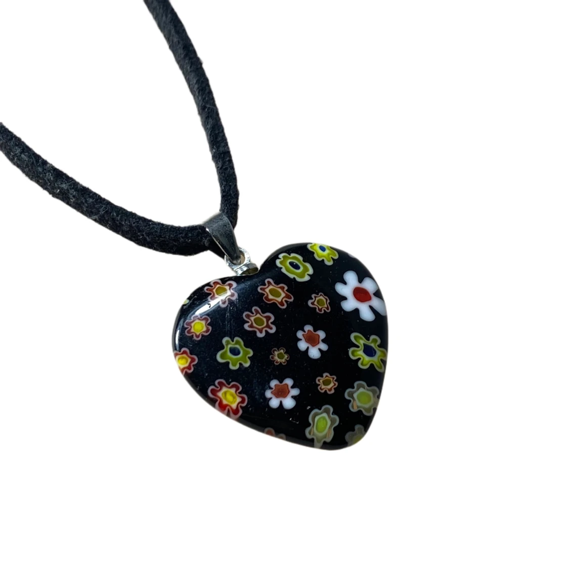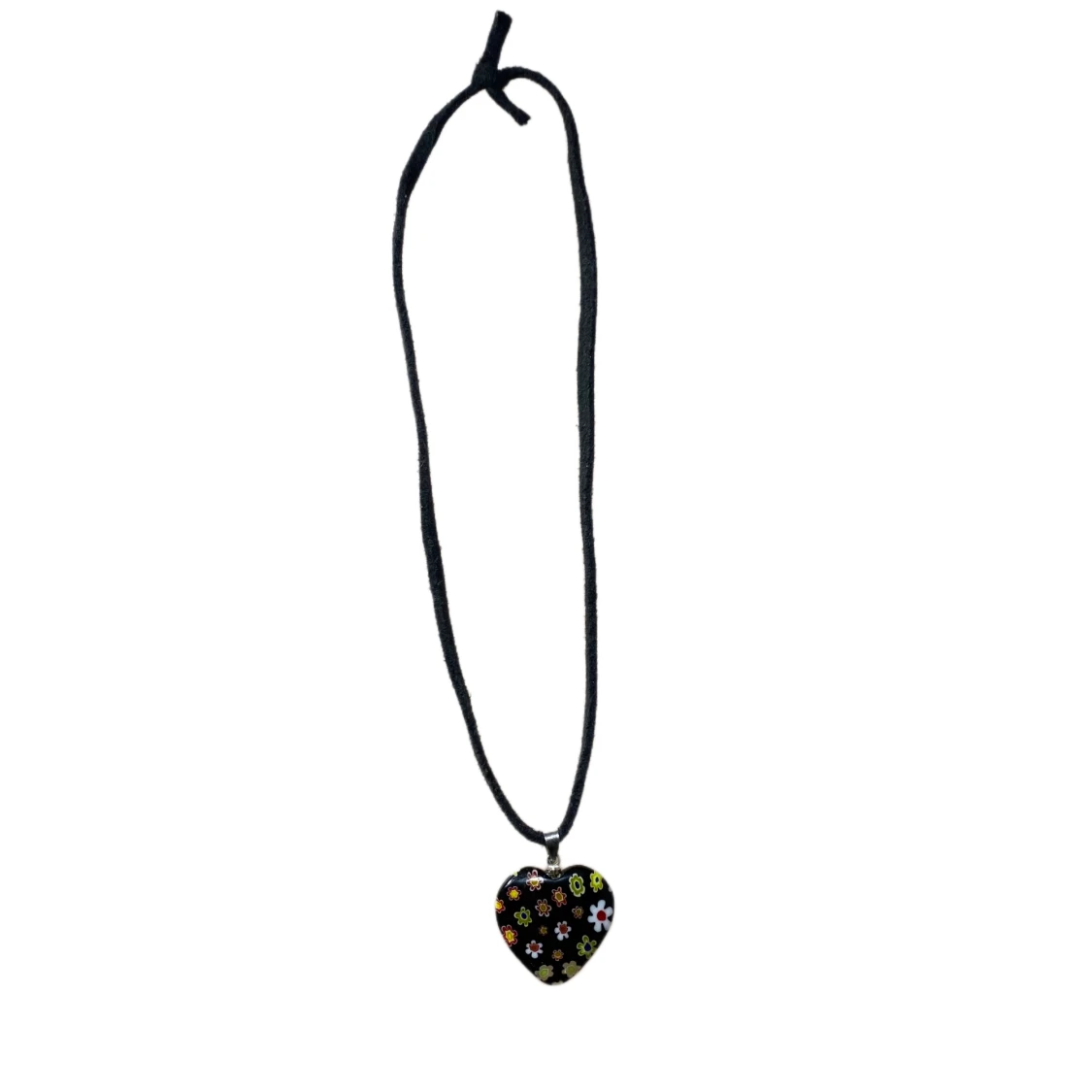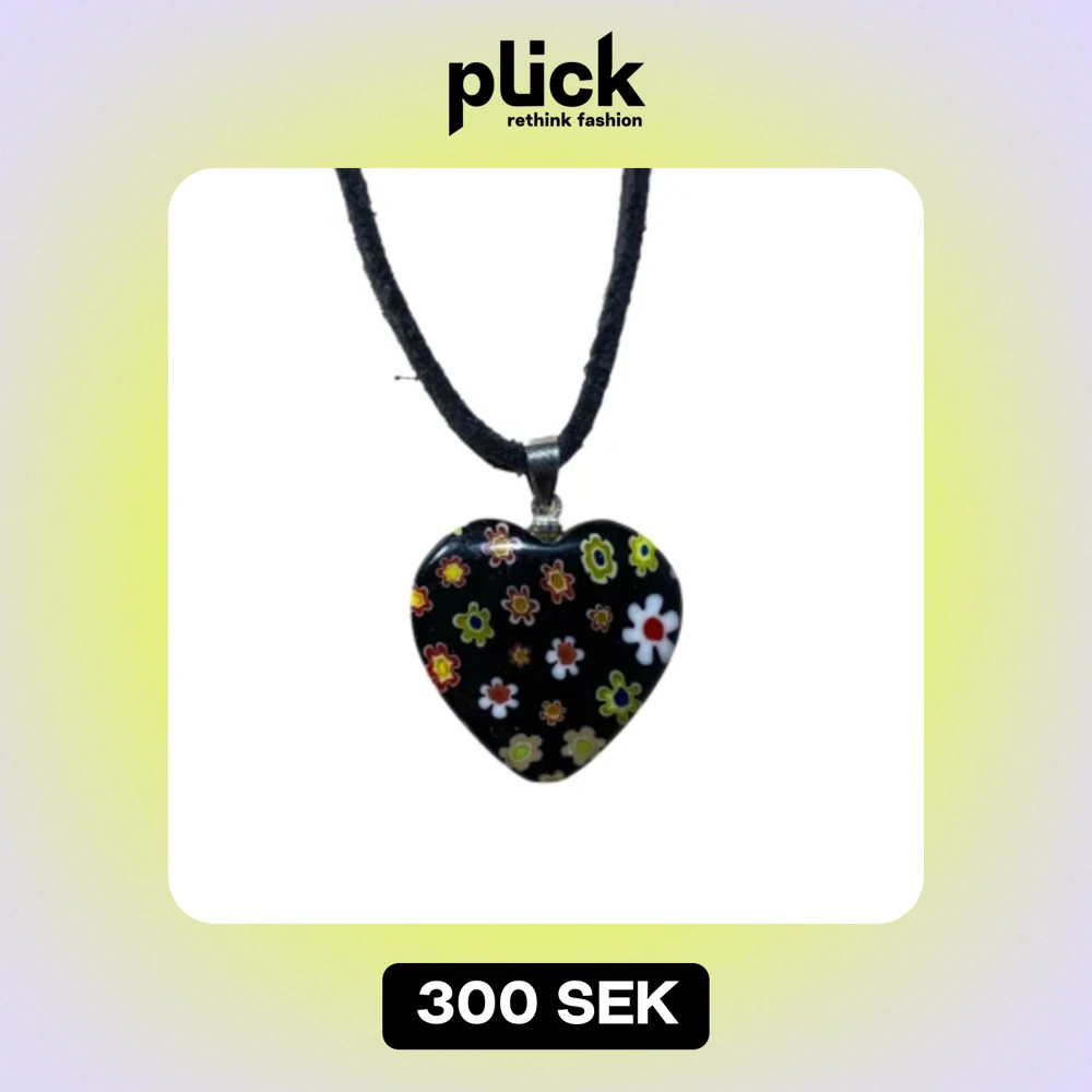 Unik hjärta i glas med blommor I bra skick Längd ca 5x4 cm Total längd 25 cm