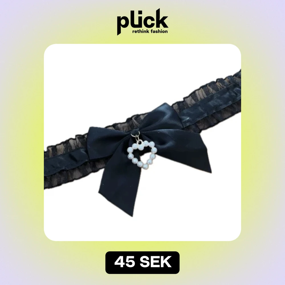 Svart choker i spets med rosett och pärlhjärta. Så fin!