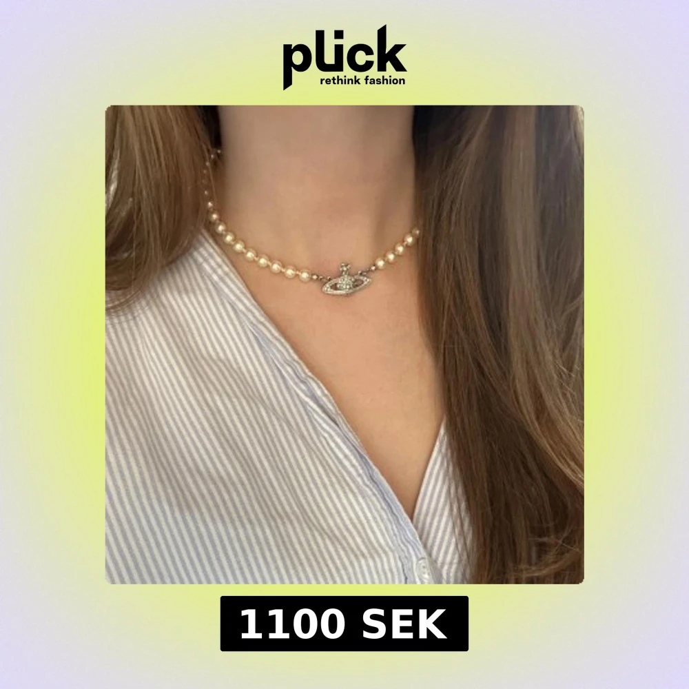 Ett pärlhalsband från Vivienne Westwood i silver. En av stenarna har lossnat, men syns knappt. Sparsamt använd och lådan tillkommer.