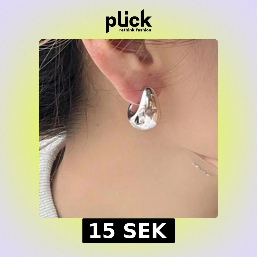 Säljer ett par chunky örhängen i droppformad design med blank silverfinish. De har en modern och stilren look som verkligen syns, och är perfekta för dig som gillar statement-smycken. Materialet är metall med spegelblank yta. Oanvänd.