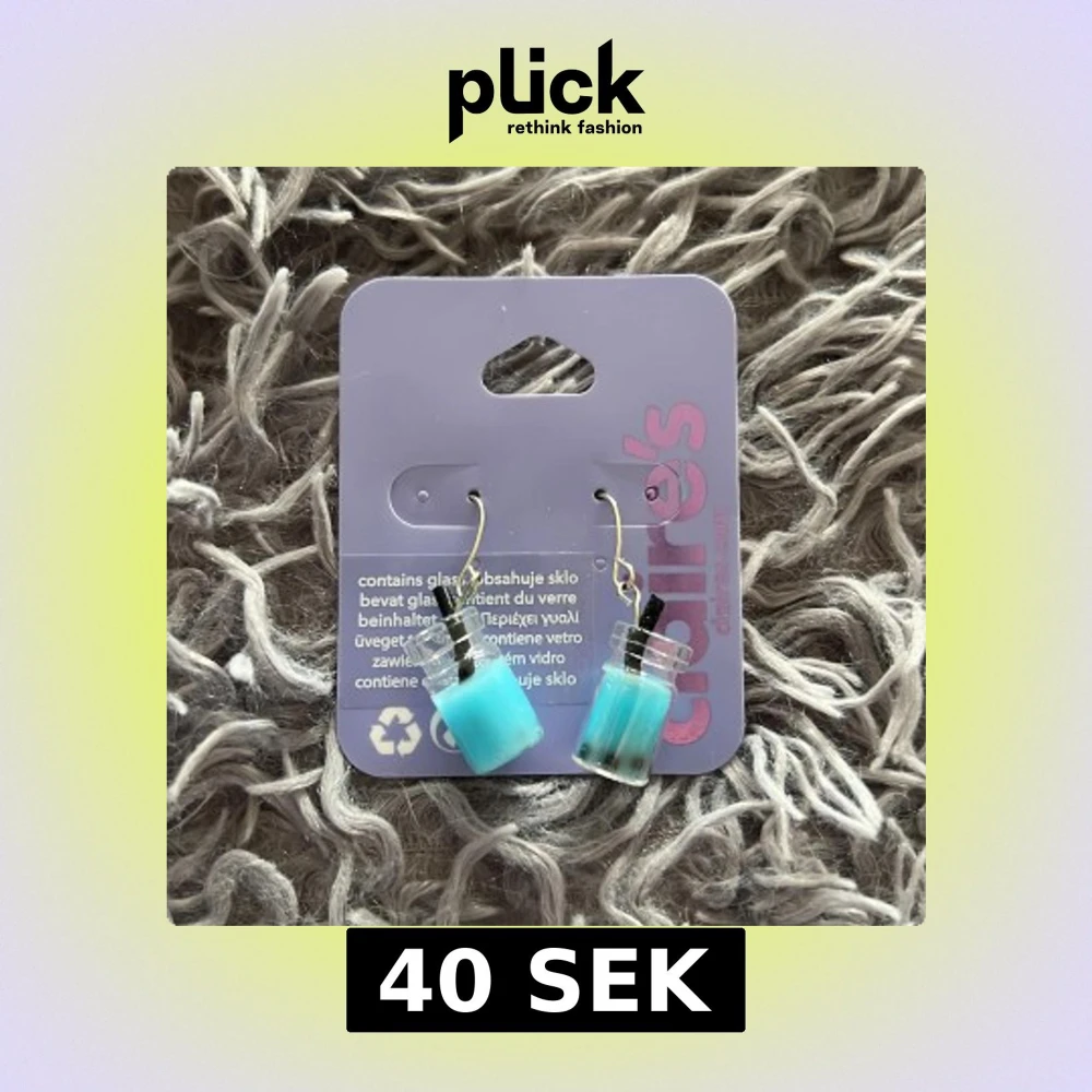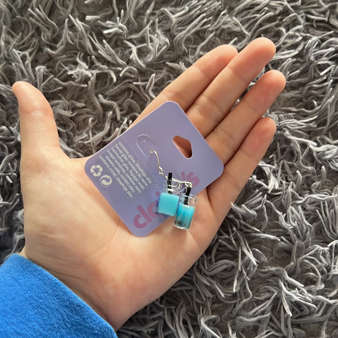 Superunika örhängen från Claire's formade som små glasflaskor fyllda med blå vätska och svart sugrörsdetalj. Hängande modell som verkligen sticker ut och ger en lekfull vibe till din stil. Perfekta för dig som gillar roliga accessoarer!