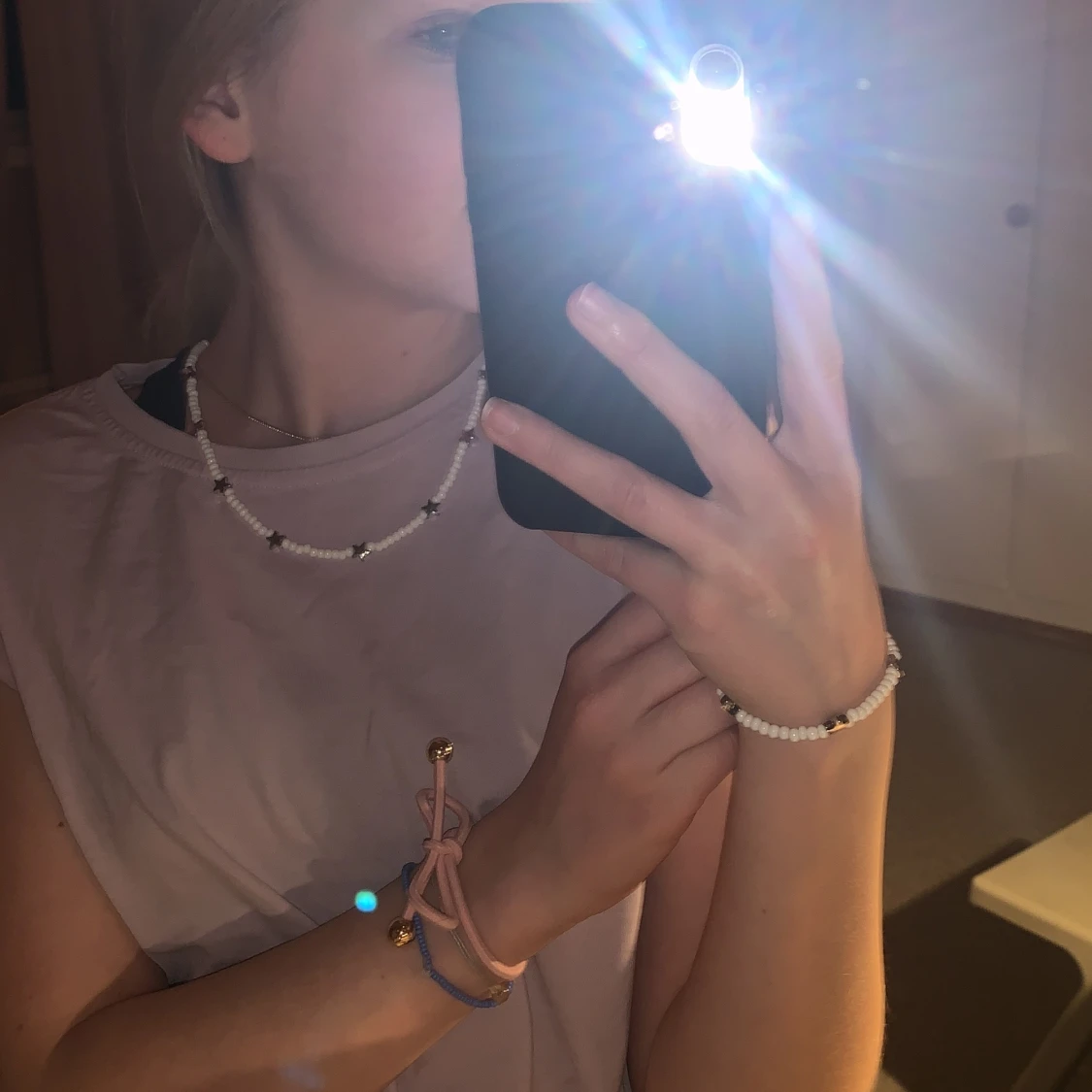 Två superfina smycken ( ett armband och 1 halsmandlar ) med vita pärlor och silvriga stjärnor! ⭐️⭐️ Köp båda för 40 ink eller var för sig för 15 ink