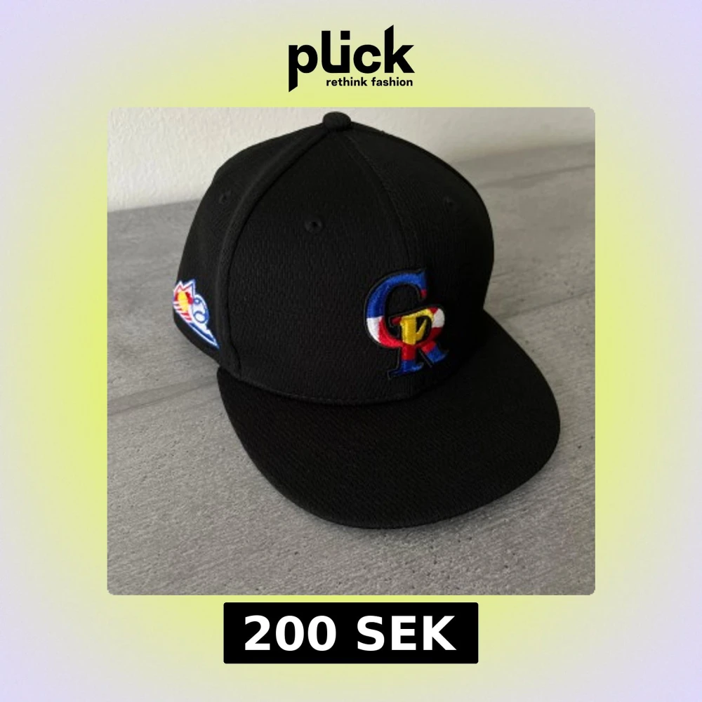 Svart 59FIFTY keps från New Era med Colorado Rockies broderad logga i blått, rött, vitt och gult framtill. Snygga broderade patchar på sidorna och baksidan. Kepsen är tillverkad i 100% polyester och har klassisk rak skärm.