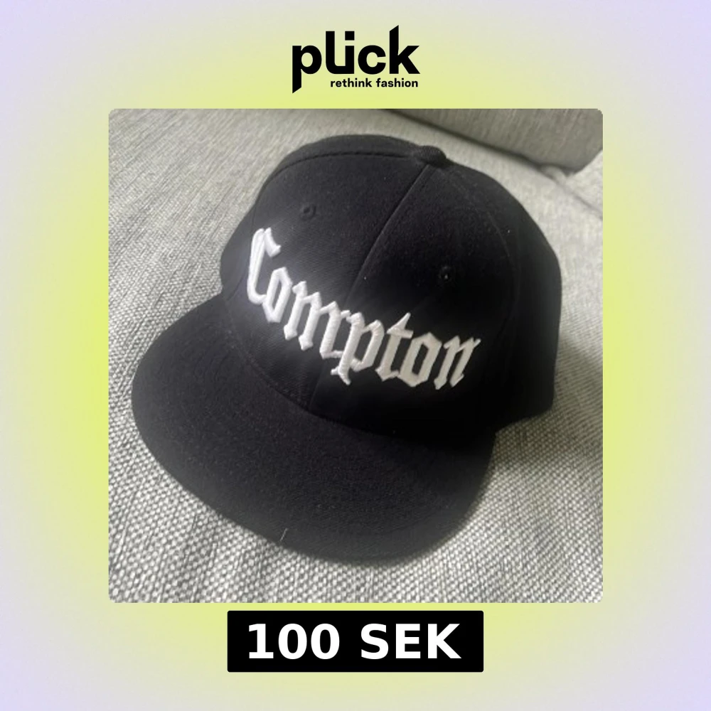 Svart SnapBack Vit sydd text ”Compton” För all west coast hiphop heads där ute
