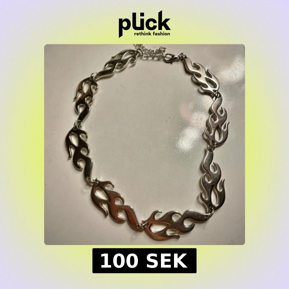 Unikt silverfärgat halsband med ett coolt flammönster. Halsbandet har justerbar kedja och karbinhake för enkel användning. Perfekt för att ge din outfit en edgy touch.