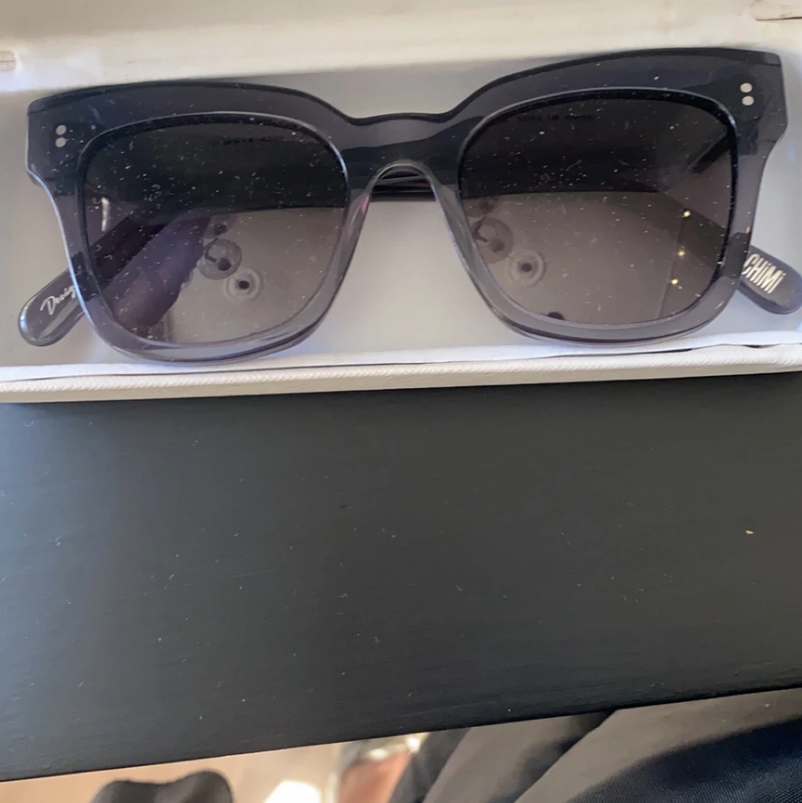 Ett par snygga sol brillor säljer som för dom är förstora för mig men dom är väldigt fina och har nästan aldrigt använt man får påse och chimi box buda köpa direkt 660