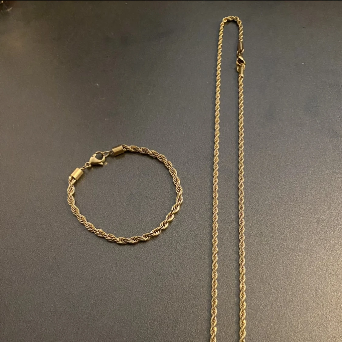 Ny Cordell kedja och armband 18 guldpläterade Kedjan längd är 50cm och 3 mm bred .och armband är 21 längd och 3 mm bred.