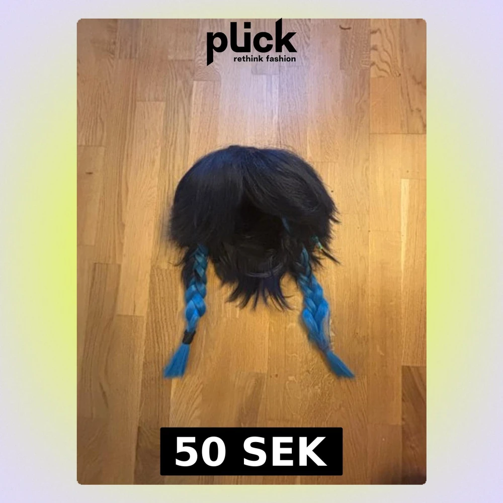 Svart-blå peruk med flätor