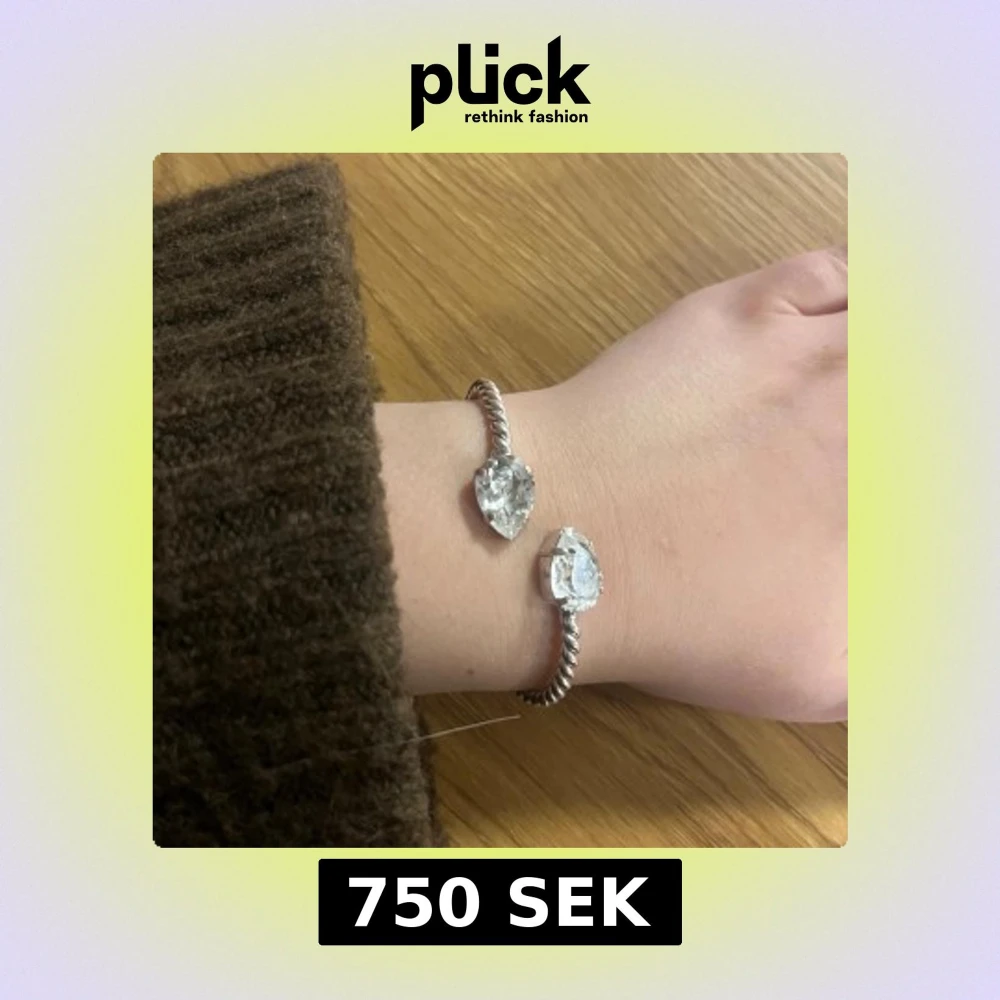 Snyggt armband i silverfärg med tvinnad design och två stora, glittrande kristaller i ändarna. Perfekt statement-piece som drar blickarna till sig och ger en lyxig känsla till din outfit. Har kvar smyckeslådan till🥰