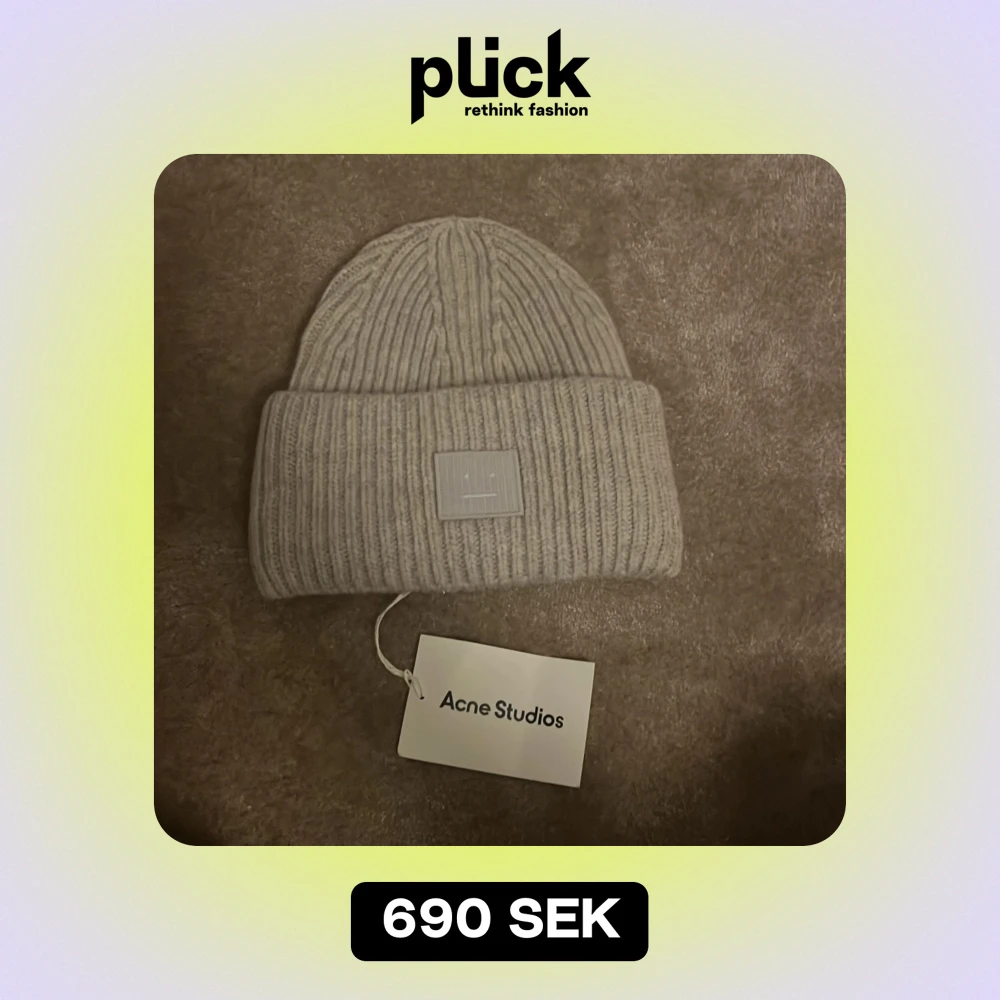 Snygg grå stickad mössa från Acne Studios med ribbad design och ett stilrent märke framtill. Helt ny aldrig använd säljer för fel present. Lapp fins kvar