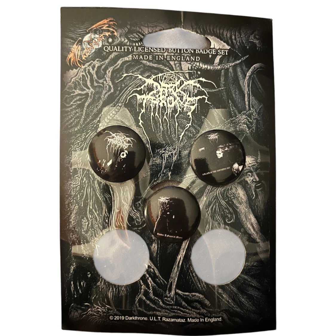 3 st darkthrone pins. Nypris 89kr på Bengans, saknas dock 2 st pins för vet inte vart dom är ;( 2,4cm bred