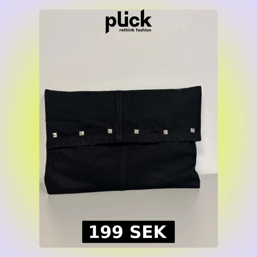 Svart datorfodral av Ă„tervunna jeans med filt och silke inuti, silvriga nitar och magnetisk knapp!đ Fodralet Ă€r ca 37x27 cmđ
