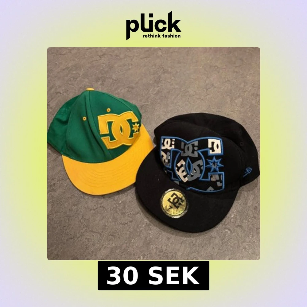 DC kepsar, har tappat formen lite men inget som märks när man har dom på sig. Köp en för 30 båda för 50