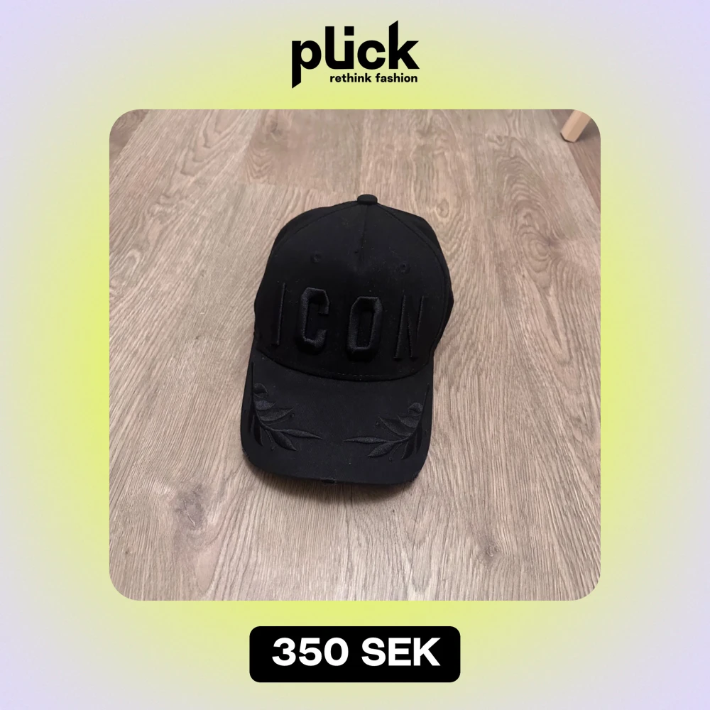 Snygg svart keps från Dsquared2 med texten 'ICON' broderad framtill. Kepsen har justerbar passform och är perfekt för både vardag och fest. Den är i mycket bra skick och har en stilren design med broderade detaljer.