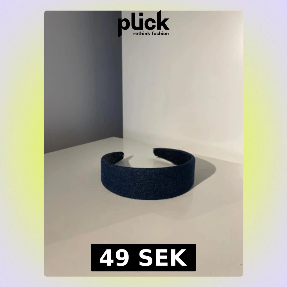 MörklĂ„tt diadem av Ă„tervunna jeans med remsor, med silke inuti!đ Diademet Ă€r ca 12 cm diameterđ
