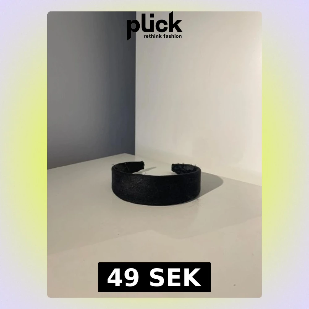Svart diadem av Ă„tervunna jeans, med silke inuti!đ Diademet Ă€r ca 12 cm diameterđ