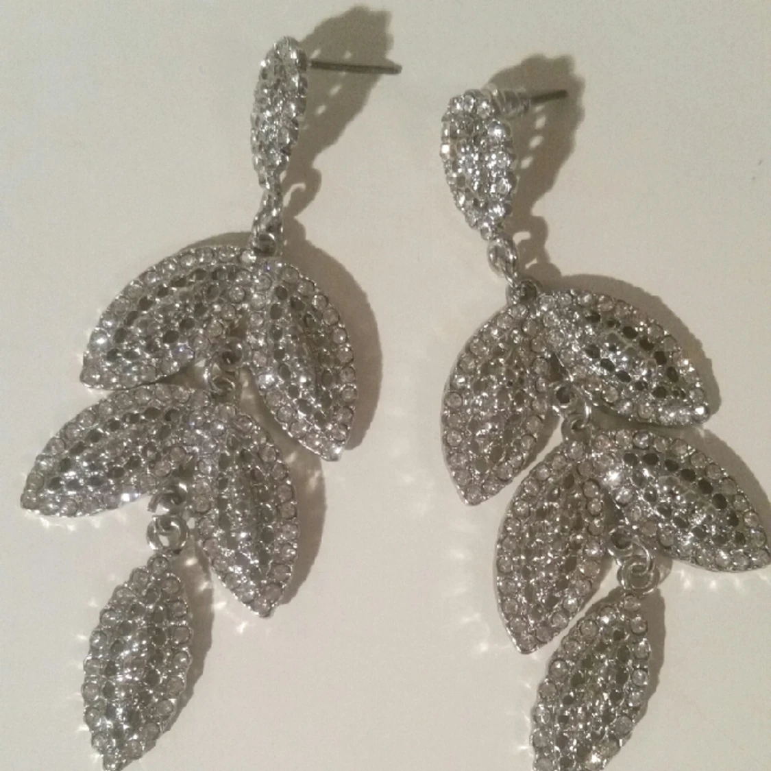 "Diamant" örhängen i form av löv eller droppar. Gnistrar fint i olika ljus.