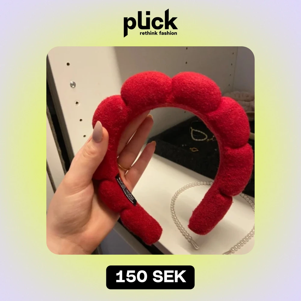 Rött trendigt diamdem som används till att ta bort håret vid sminkning/skincare Inga defekter/fläckar