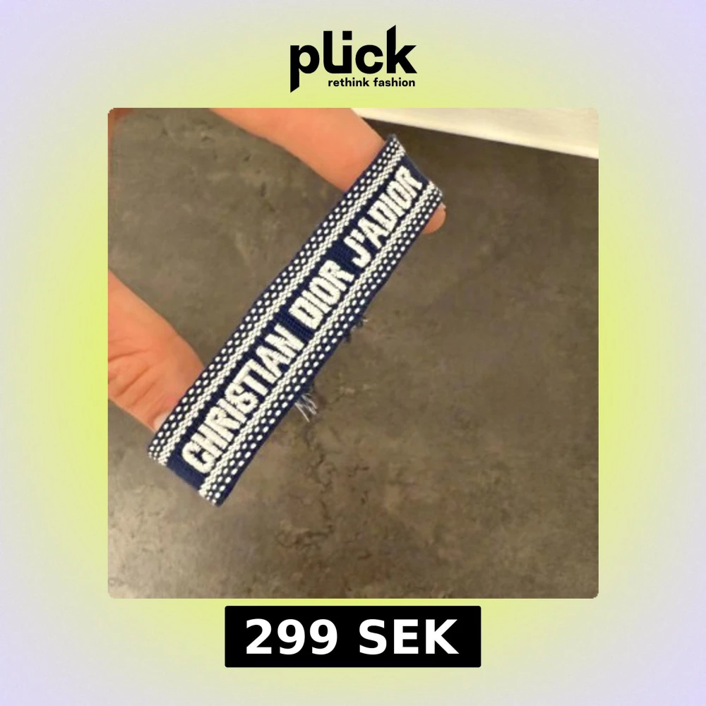 Snyggt blått armband från Christian Dior med texten 'J'Adior' broderad i vitt. Armbandet har justerbar knytning med tofsar och är dekorerat med vita prickar längs kanterna. Perfekt accessoar för att lyfta din outfit.
