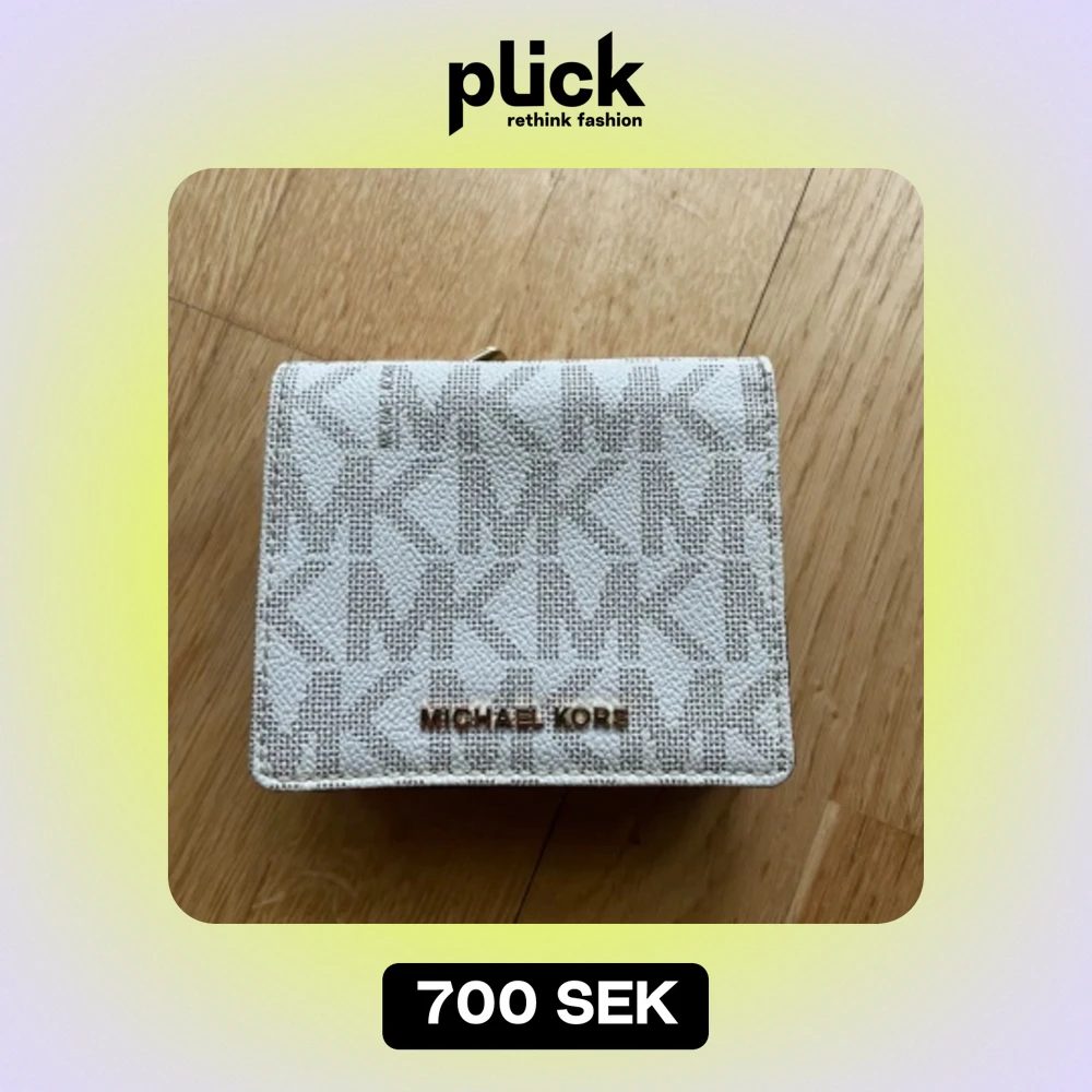Fräsch knappt använd plånbok från Michael kors. Bra skick, rymlig och bra med utrymme. Måtten är 11 cm i längd och 9 cm i höjd.