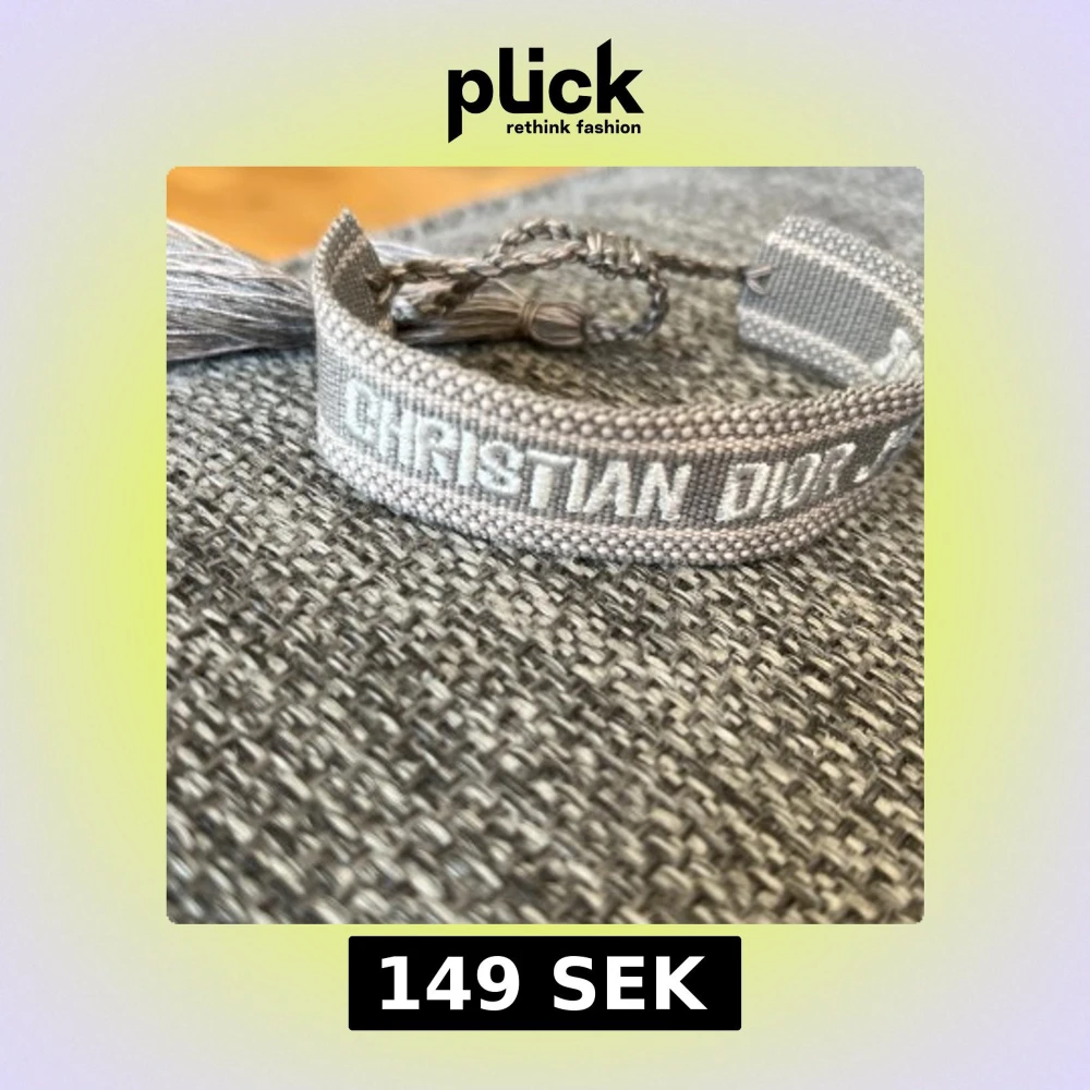 Snyggt vävt armband från Christian Dior i grått med texten 'CHRISTIAN DIOR J'ADIOR' broderad i vitt. Armbandet har justerbar knytning med två tofsar i ändarna för en cool och avslappnad look. Perfekt accessoar för att lyfta din outfit.