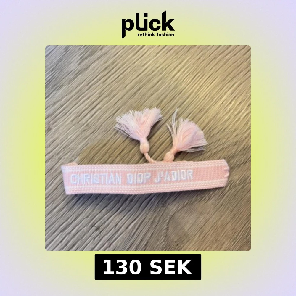 Rosa Christian Dior armband med justerbara tofsar. Armbandet kostar 130 kr och inga förhandling eller prisförslag.