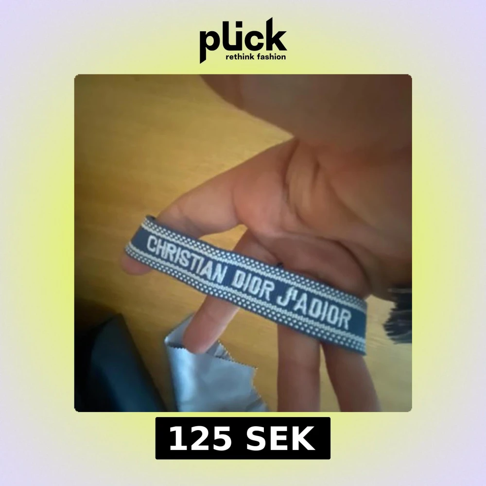 Snyggt blått armband från Christian Dior med texten 'J'ADIOR' broderad i vitt. Armbandet har en cool, casual look och är gjort i tyg med vita detaljer längs kanterna. Perfekt accessoar för att lyfta din outfit.