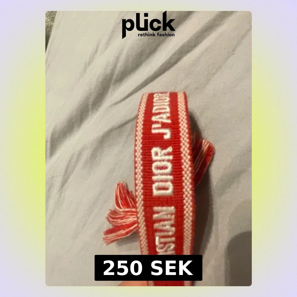 Säljer ett snyggt rött tygarmband från Christian Dior med texten 'J'Adior' broderad i vitt. Armbandet har justerbar knytning med tofsar i ändarna och är perfekt för dig som gillar exklusiva accessoarer med streetstyle-vibe.