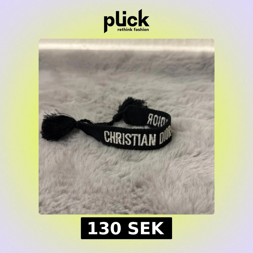 Snyggt svart armband från Christian Dior med vit broderad logga. Armbandet har tofsar i ändarna och är gjort i ett mjukt textilmaterial. Perfekt accessoar för att lyfta din outfit med en lyxig touch.