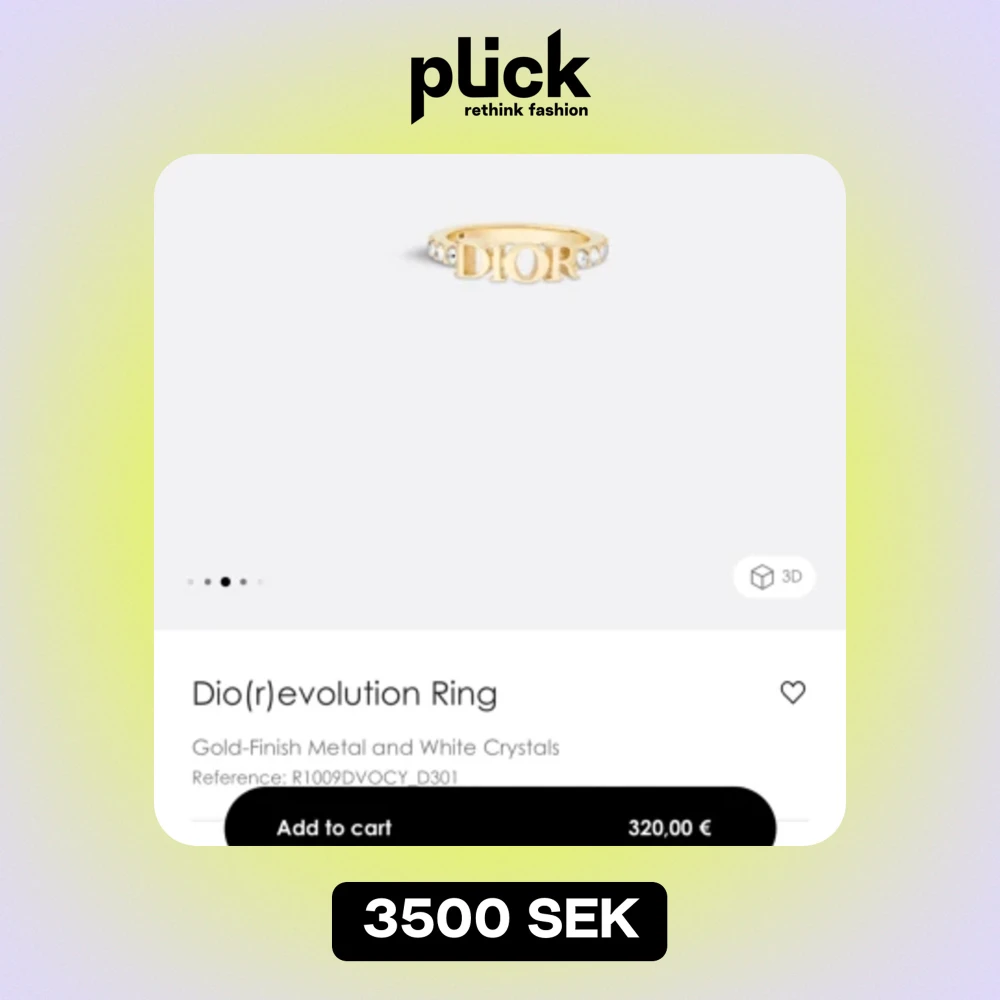 Säljer denna dior ring, köpt fel storlek men går ej frakta tillbaka. Kvitto finns och låda. Aldrig använd.