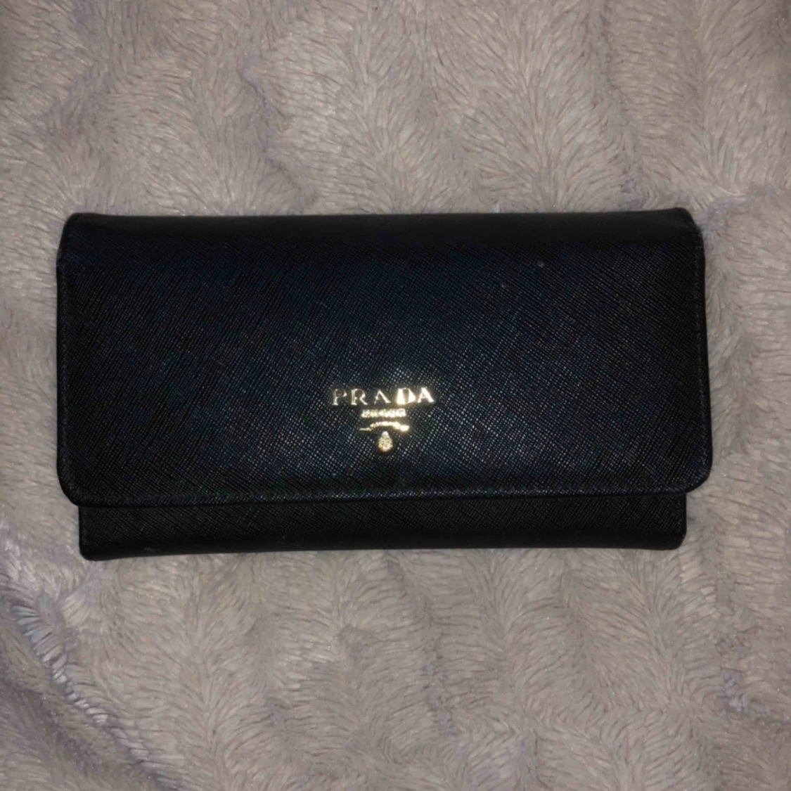 Jättefin prada plånbok jag aldrig använt, och som har ett äkthetskort. Fick den som present och har tappat bort boxen så vet dessvärre inte om den är äkta, kan därför tänka mig att gå ner i pris