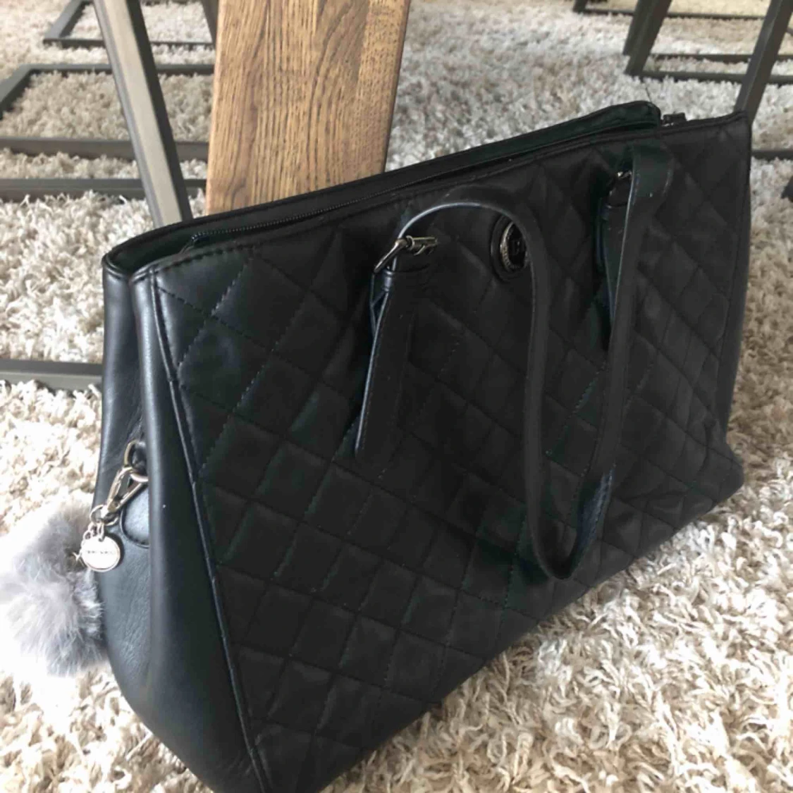 Väldigt fin och rymlig svart handväska från Don Donna:) Köpt för ca 400kr Kan mötas i nacka eller i slussen, om köparen vill ha väskan skickad till dig står köparen för frakten Betalning sker via swish