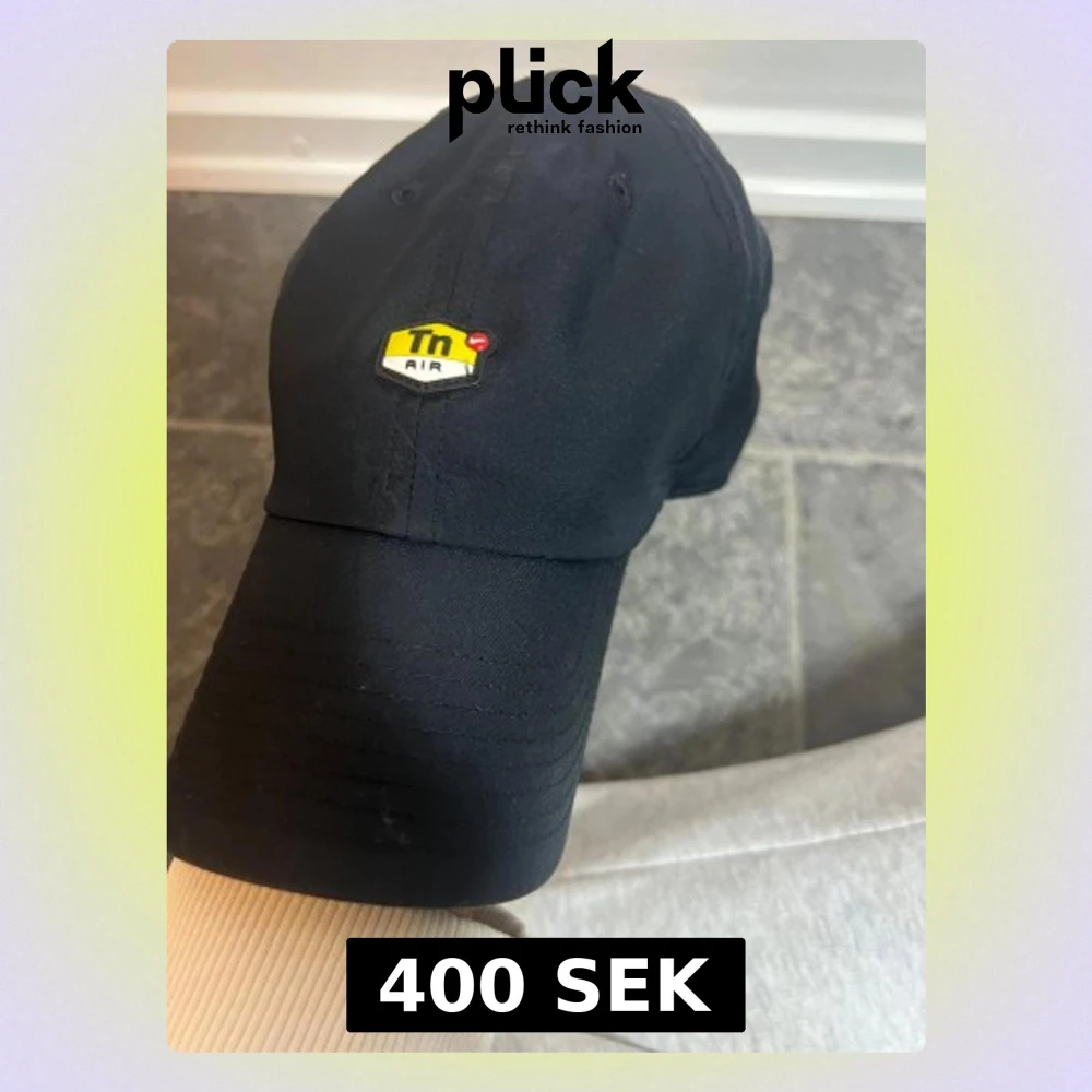 Svart keps från Nike med Tn Air-logga i gult och vitt framtill och gul swoosh bak. Justerbar snapback och tillverkad i Dri-FIT-material som andas. Snygg och sportig look, perfekt för dig som gillar streetwear och sneakers.