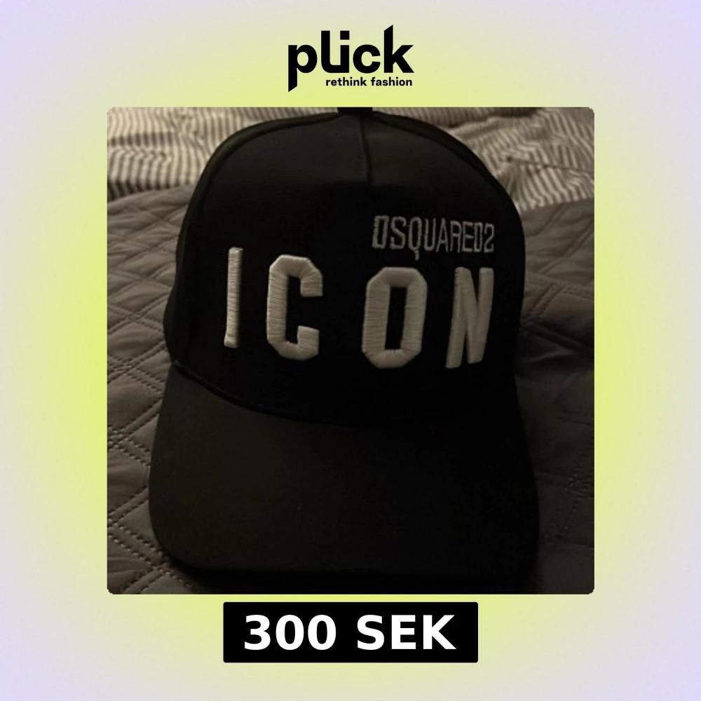 Snygg svart keps från Dsquared2 med stor vit broderad text 'ICON' framtill och Dsquared2-logga ovanför. Justerbar rem bak med metallspänne där 'ICON' är ingraverat. Perfekt för dig som vill sticka ut med en trendig accessoar.