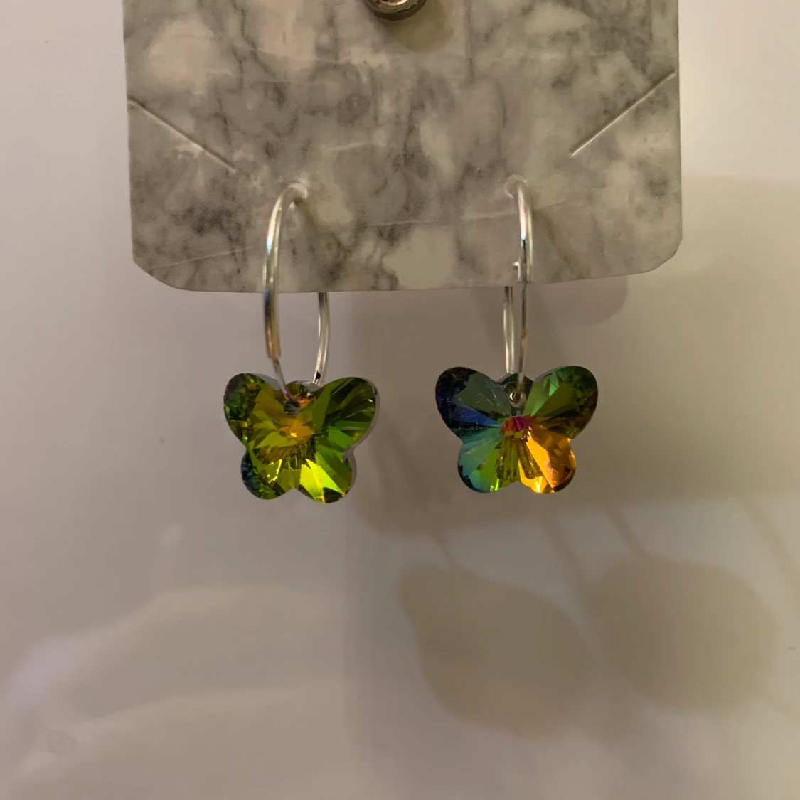 Kristall fjärilar som skiftar färg i äkta sterling silver 925. Jag har gjort de själv. Köparen står för frakt.