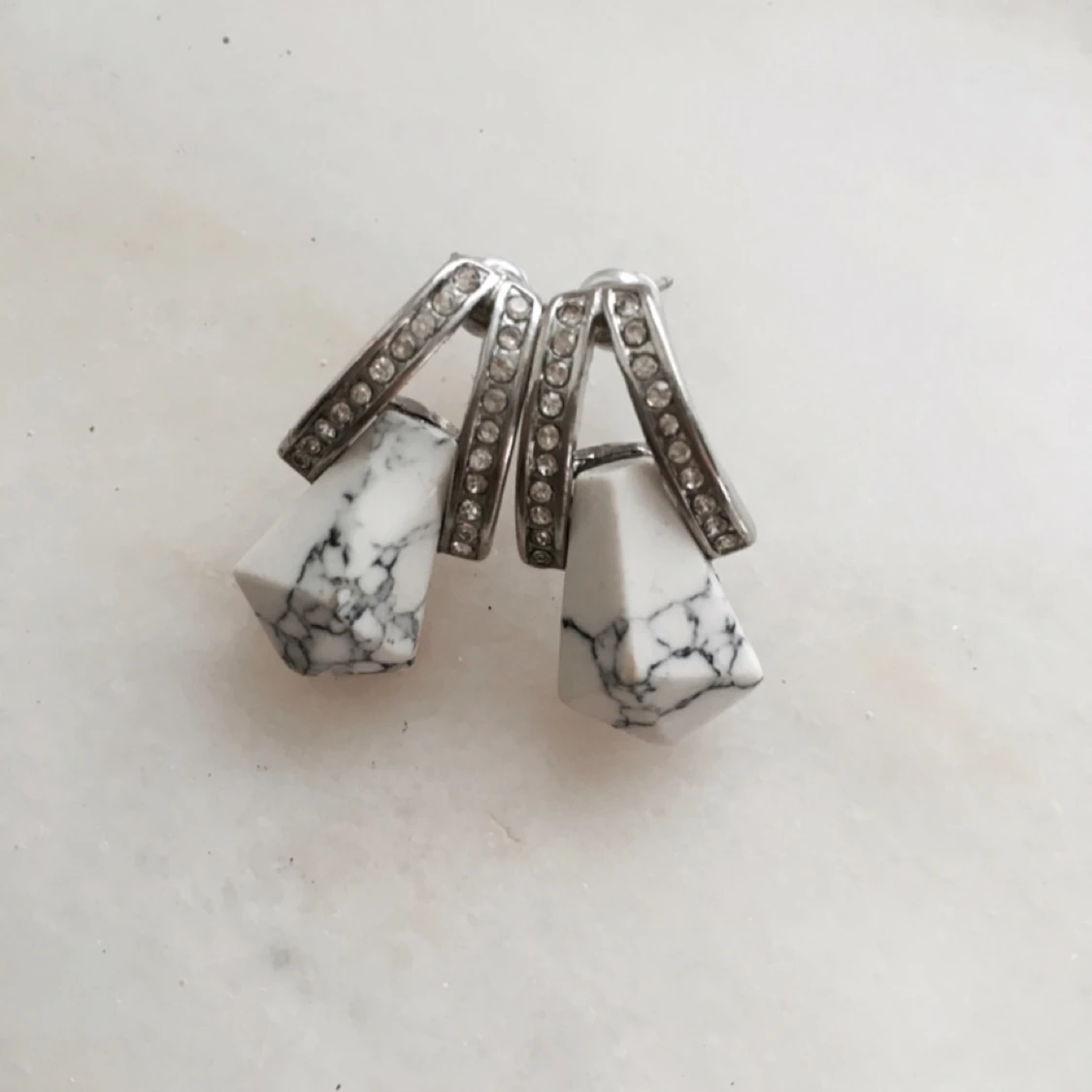 Fina örhängen i silver och marmor. Oanvända. Frakt tillkommer.
