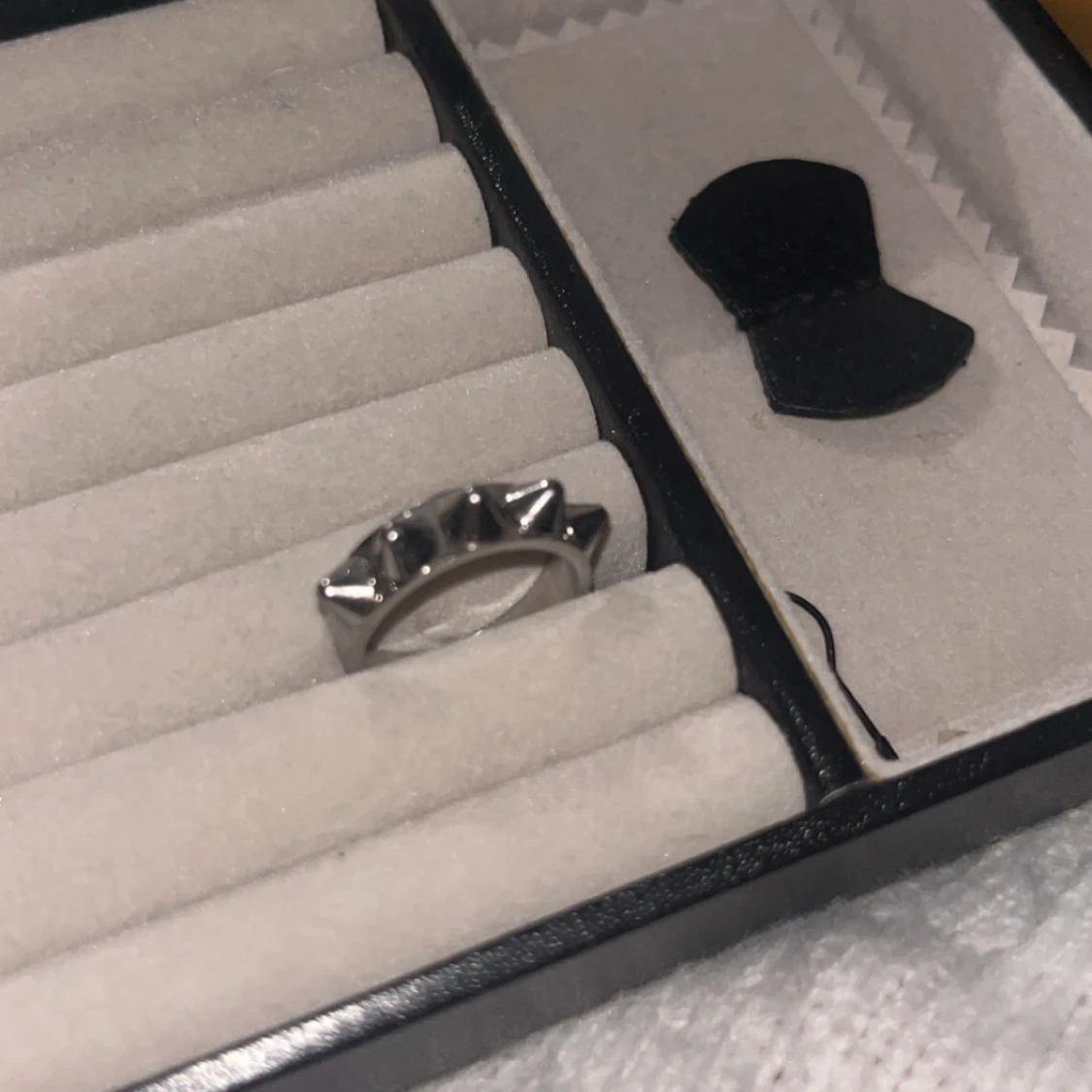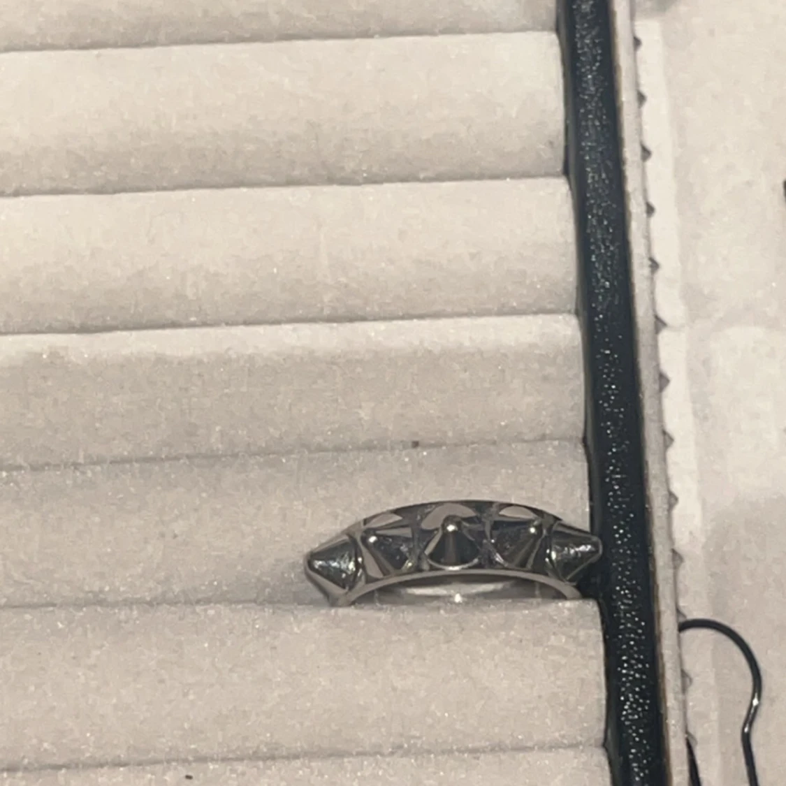 Cool ring i silverfärgad metall med markerade nitar runt hela ringen. Ringen har en modern design som sticker ut och passar perfekt för dig som gillar att addera lite attityd till din stil.