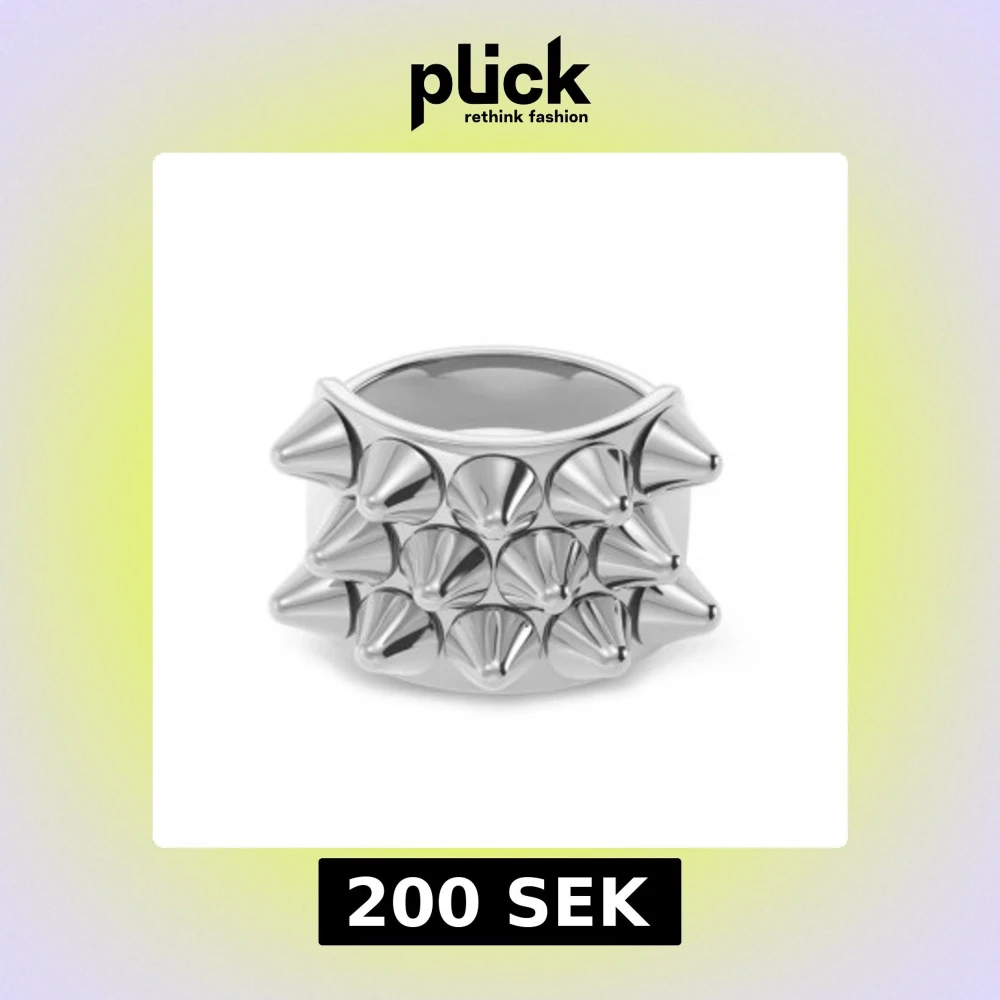 Cool och edgy silvrig ring med framträdande nitar. Är i storlek m/17.5. Perfekt för att ge din stil en tuff touch. Ringen har en bred design och är tillverkad i ett glänsande material. Säljer pga att den inte kommer till användning.
