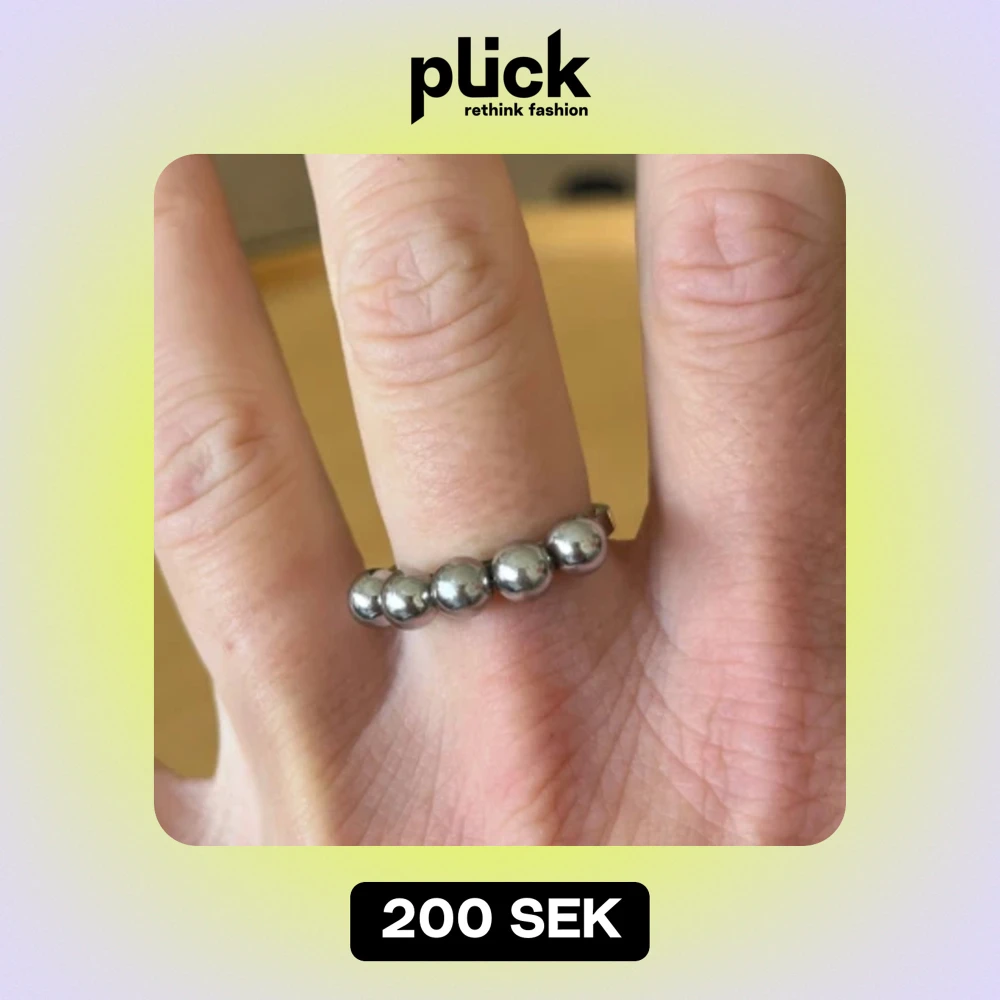 Edblad ring med 5 små kulor / bollar. Använd men i fint skicka. Ca 17 i ringstorlek.