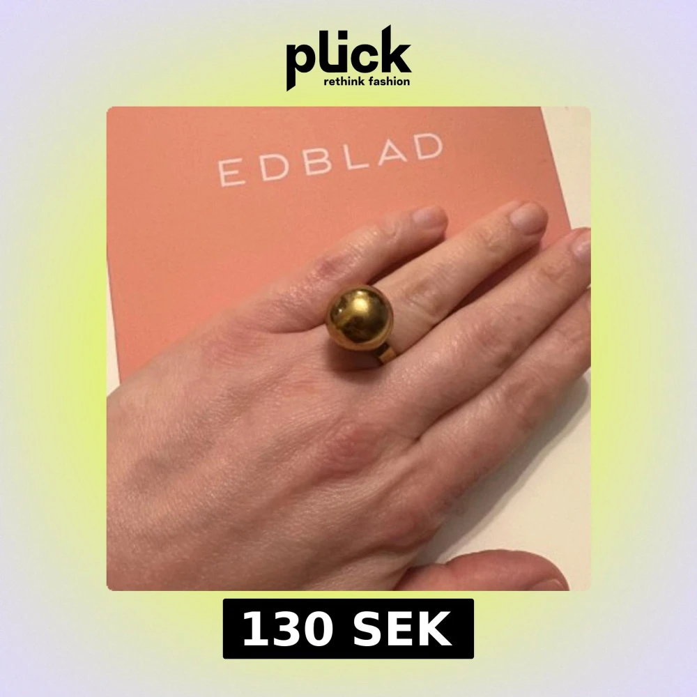 Cool ring från Edblad i guldig metall med en stor, rund kula som blickfång. Ringen har en enkel, modern design som verkligen sticker ut och passar perfekt för dig som gillar att göra ett statement med dina accessoarer.