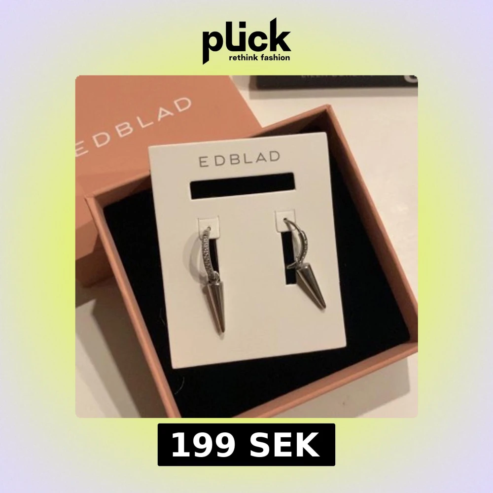 Snygga silvriga örhängen från Edblad med en modern design. De har en stilren båge med små glittriga detaljer och en spetsig hängande del. Aldrig använda❤️