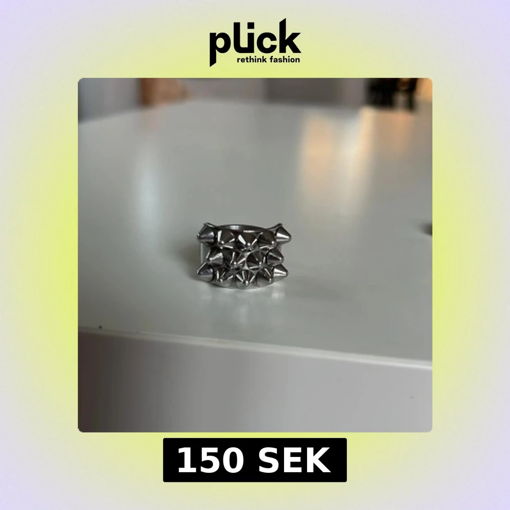 SĂ€ljer min populĂ€ra ring frĂ„n Edblad. Knappt anvĂ€nd. Fin ring i silverfĂ€rgad metall med flera spetsiga nitar pĂ„ framsidan frĂ„n Edblad. Stl 18,5 nypris 399kr! âŁïž