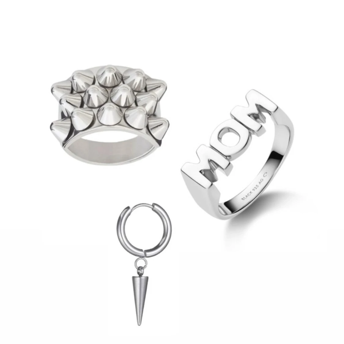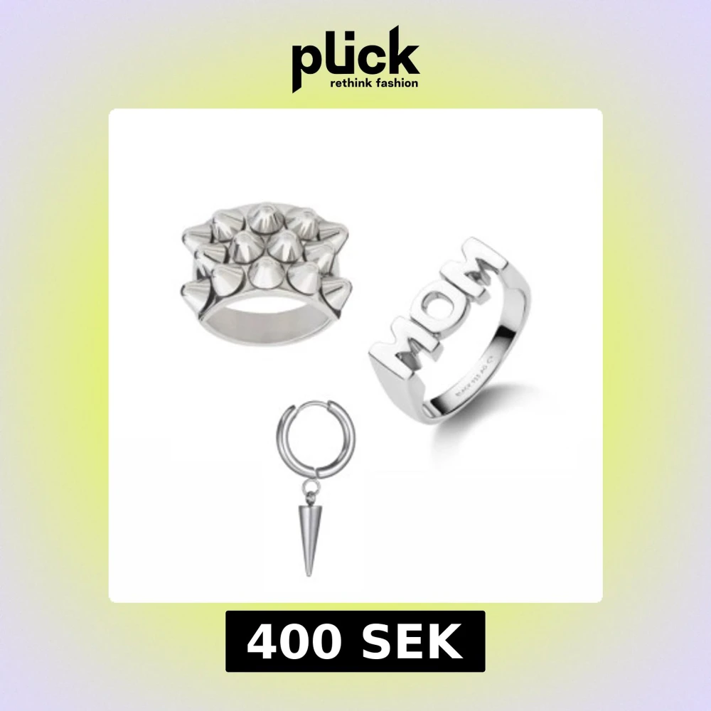 Edblad ringen är i storlek 17.50, MOM ringen vet jag inte tyvärr. Allt ingår & är äkta. Om ni har några frågor så är det bara att skriva 🤗