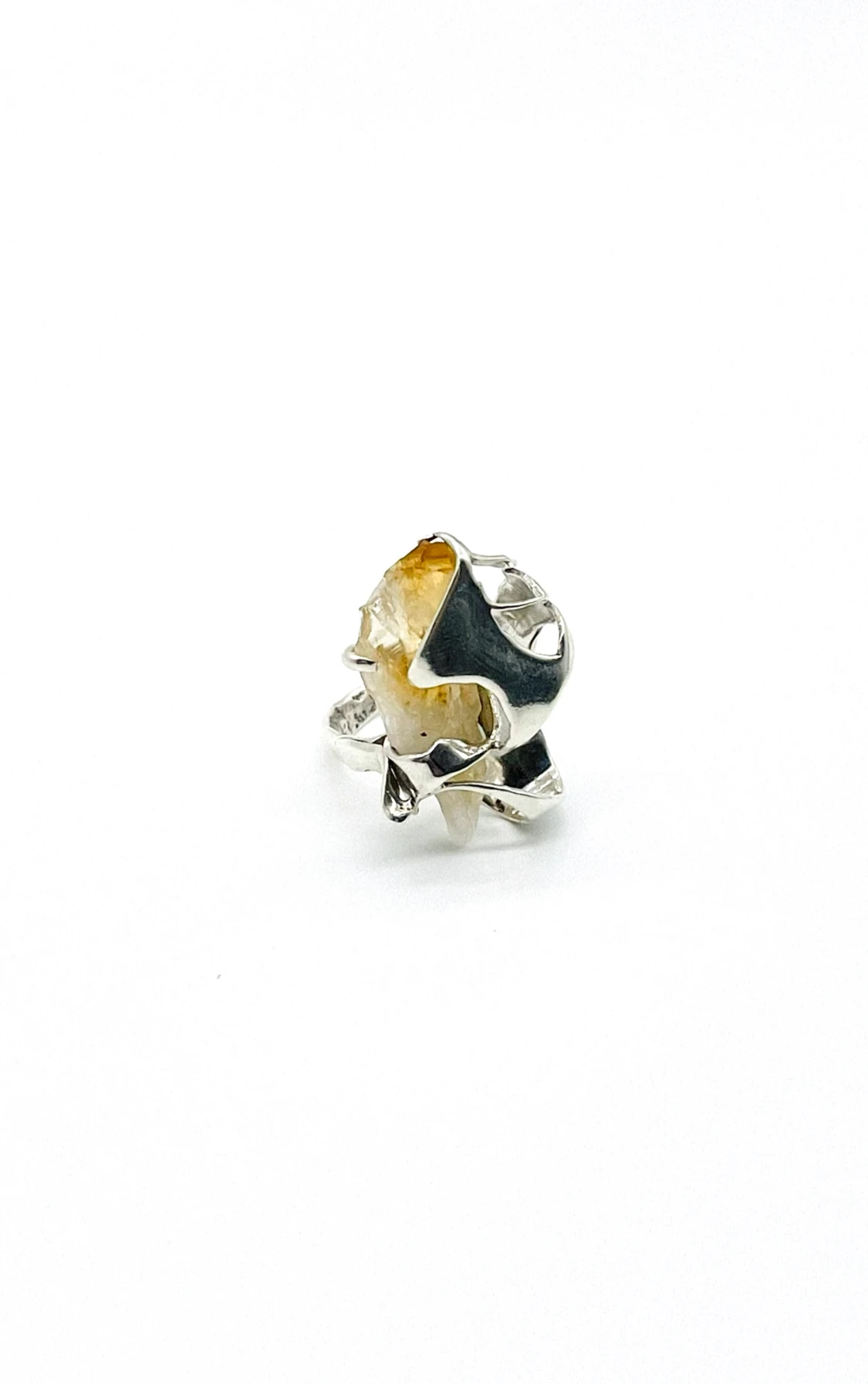 Shattered ring made of Sterling silver 925 with golden citrine crystal. One of the Shattered dreams collection, explore the store for more items. Size: 21 Size adjustments available Handmade in Stockholm, Sweden