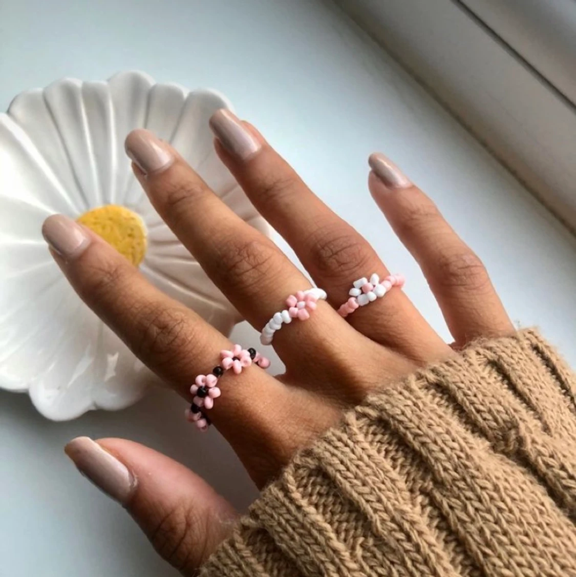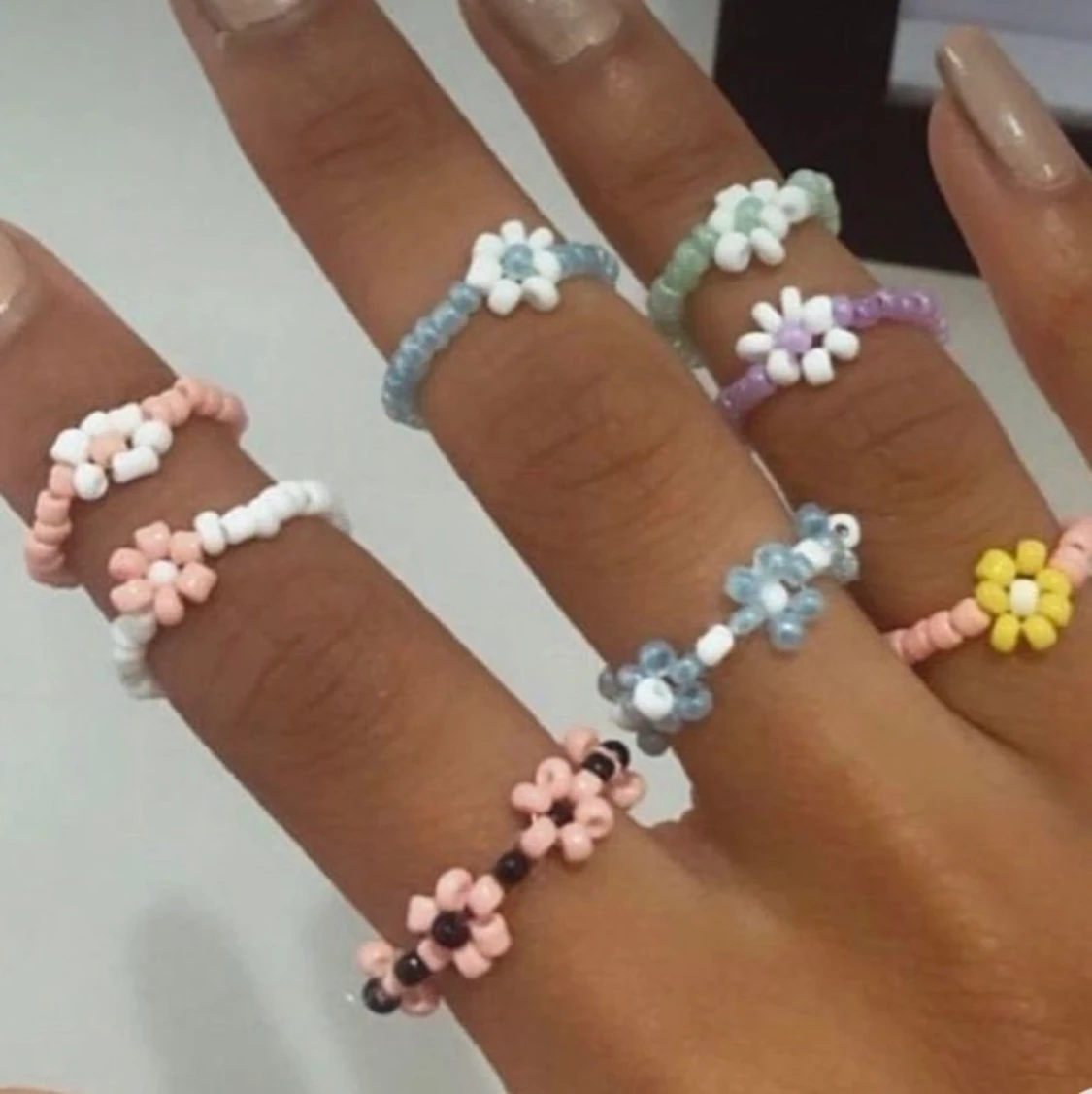 Vi säljer massa fina pärlringar. Ni kan helt själv välja modell och färger. Endast pärlor - 15kr. Pärlor och en blomma 23kr endast blommor 29kr❤️ Frakt är 13kr inte 39!!