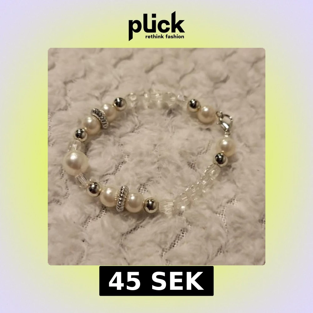 Snyggt armband med vita pärlor och silverfärgade detaljer. Armbandet har en mix av större och mindre pärlor samt glittrande silverkulor och dekorativa ringar. Perfekt för att ge en elegant touch till din outfit.